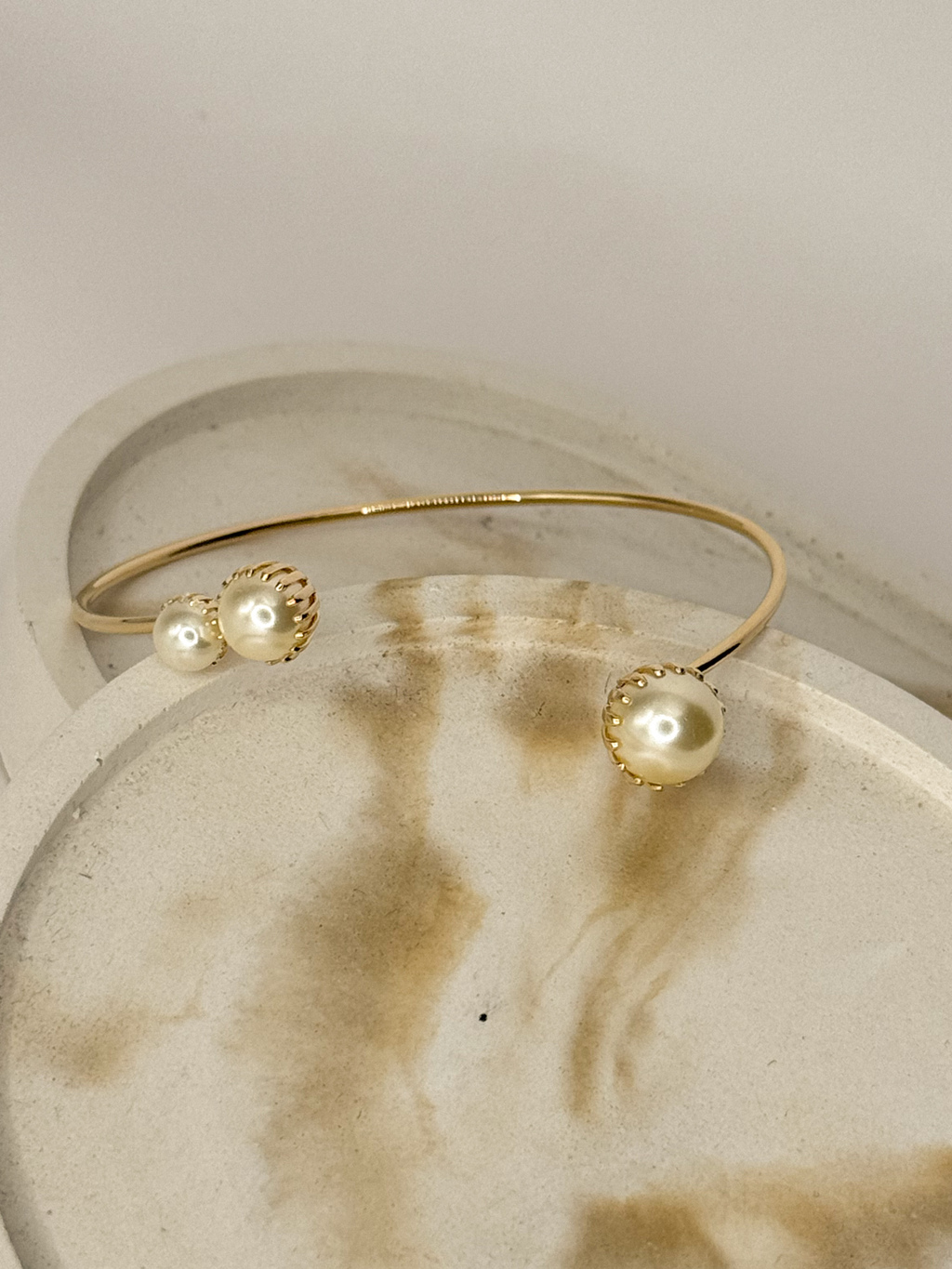 Elegância e sofisticação em uma joia atemporal! O Bracelete Pérola Clássico combina o brilho do ouro 7 milésimos com a delicadeza das pérolas, criando um acessório refinado. Seu design aberto garante conforto e ajuste perfeito ao pulso.