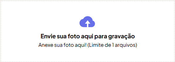 Após escolher o tipo de gravação, deverá carregar a foto escolhida clicando no botão ‘envie sua foto aqui’.