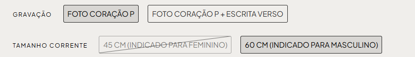 Escolha a gravação: Foto coração P ou Foto coração P + Escrita Verso